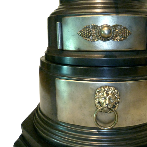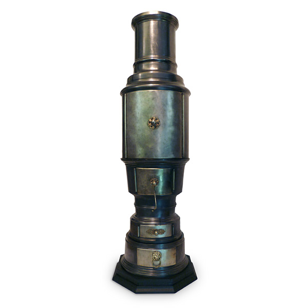 Der vermutlich auf den Maler H. Mengelnberg zu Elberfeld, einen seinerzeit bekannten Künstler der Düsseldorfer Schule, zurückgehende Entwurf dieses Säulenofens aus dem Biedermeier besticht nicht nur durch seine polierte Oberfläche; glatt polierte Oberflächen galten zu dieser Zeit als Besonderheit.