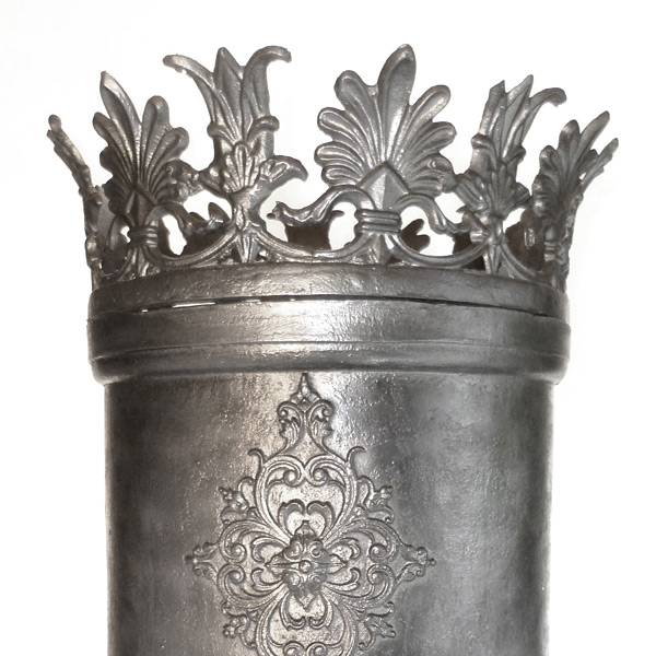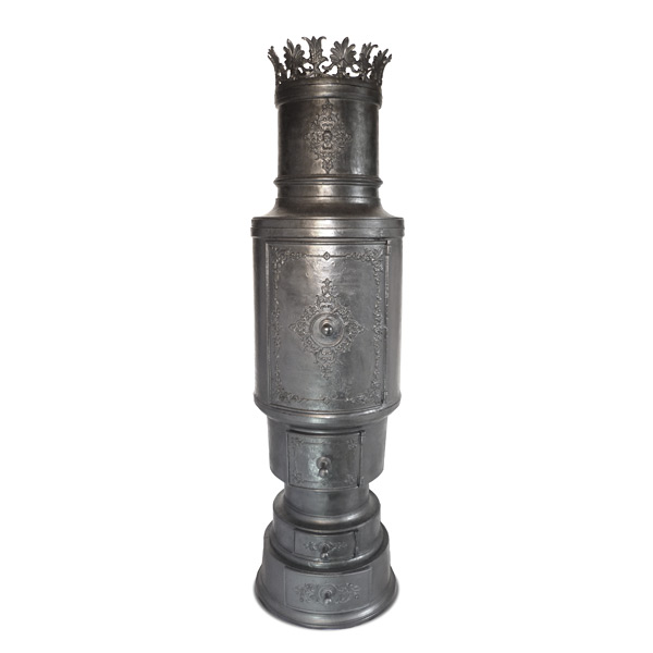 Stabrandgefasste Funktionselemente sowie auffällige, ebenfalls einteilig gegossene Zierkrone. Mit wachsender Bedeutung des Brennstoffs Kohle zu Beginn des 19. Jahrhunderts fanden vermehrt auch kochtaugliche Dauerbrandöfen mit Koch- und Warmhalteeinrichtungen Einzug in vor allem städtische Haushaltungen. Vgl. Öfen Nr.093 und 253.