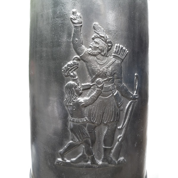 Auffälligste Besonderheit ist die in Flachrelief gegossene Darstellung des Schweizer Freiheitskämpfers "Wilhelm Tell mit seinem Sohn nach dem Apfelschuss", ein dem Aalener Modelleur und Zeichner Christian Plock (1809-1882) zuzuordnendes Genremotiv.
